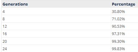 This shows some likelihood of having a common ancestor within a certain number of generations when your match has a GD of 4: