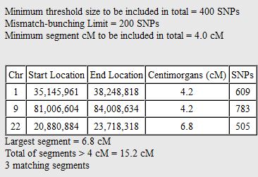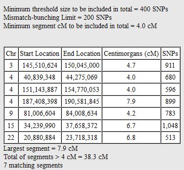 Here I don’t even have to lower the Gedmatch thresholds for the match between Mary and Jonathan: