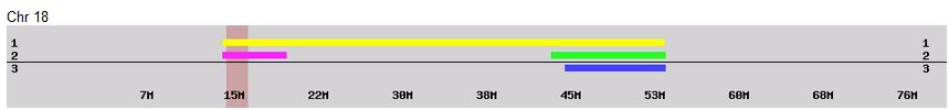 Here is an example of case #4 above where Judy matches both Carol and my mom, forming another triangulation group on a portion of Chromosome 18: