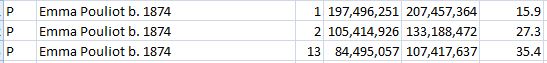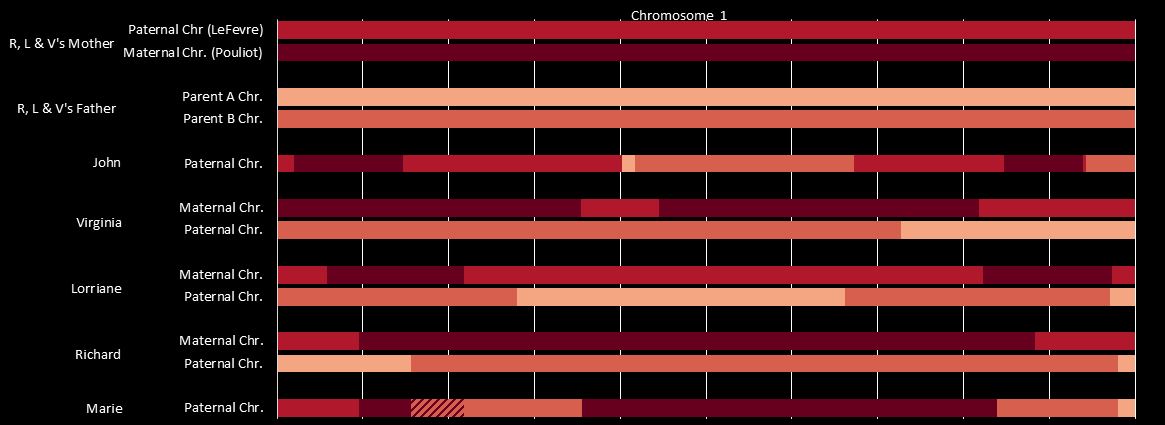 Above, I had mapped Emma Pouliot to Marie on Chromosome 1: