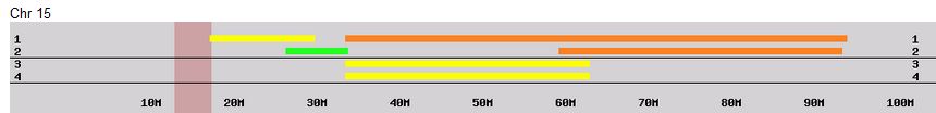 On Chromosome 15 here are the same people, but in the following order: Aunts Lorraine and Virginia, Pat and Buddy.