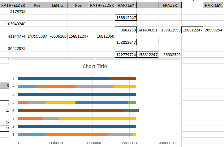 Again, I had to reformat the Excel-chosen color to be consistent with what I had for Rathfelder. I chose the last position for Heidi and Sharon as the highest that I had as this was their last segment. After a bit of wrangling with Excel, I was able to get this:
