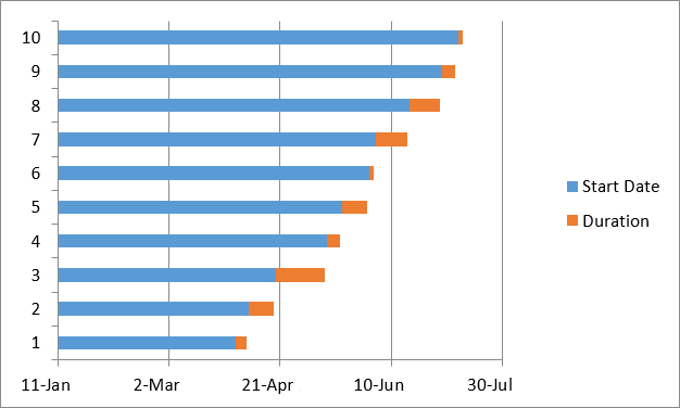 I have looked at Stacked Bar Charts in Excel as they seem to be the closest to what I am looking for. Today I looked at a method for producing Gantt Charts at ablebits.com which seems to hold some promise of application for DNA mapping: