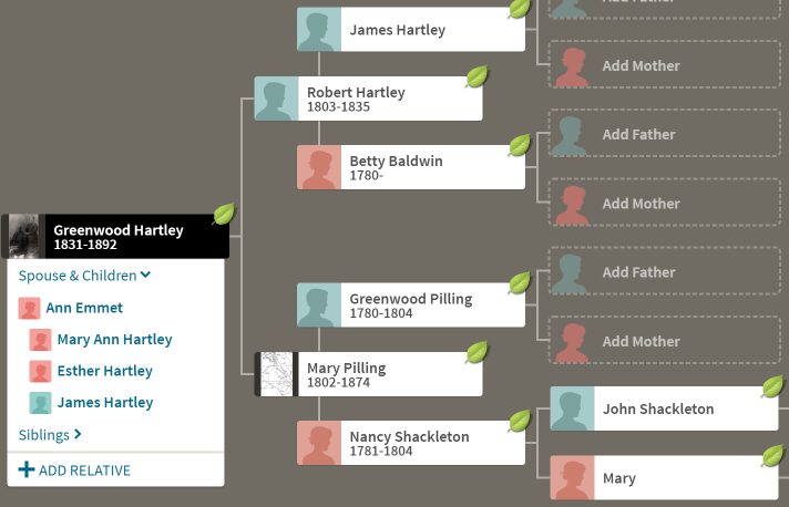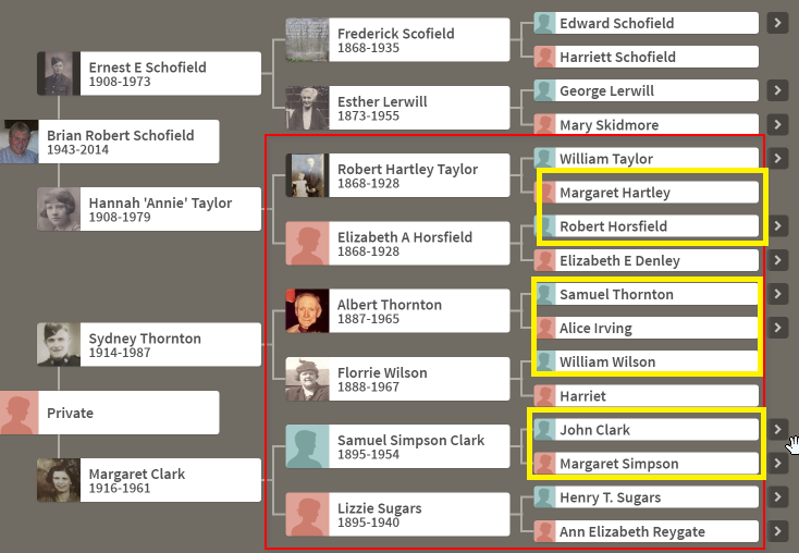 Greenwood is my 2nd great grandfather. The level of 4th cousin would be out one more generation to Robert and Mary Pilling. Lee is younger than me, so he may have to go back another generation to his 4th great grandfather depending on the line. For example, Robert Horsfield in Lee’s tree was born in 1833, but Margaret Simpson who is the same generation from Lee was born in 1865.