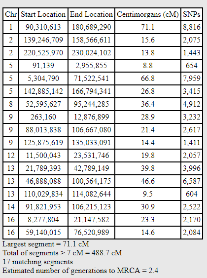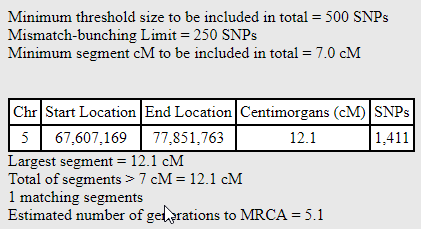Here is what my match with Maury looks like at gedmatch: