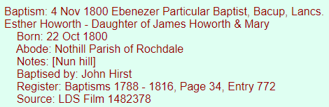 3. The person writing down the information for the Baptist Baptism mixed up the Hey Head in Rochdale with the one in Rochdale.