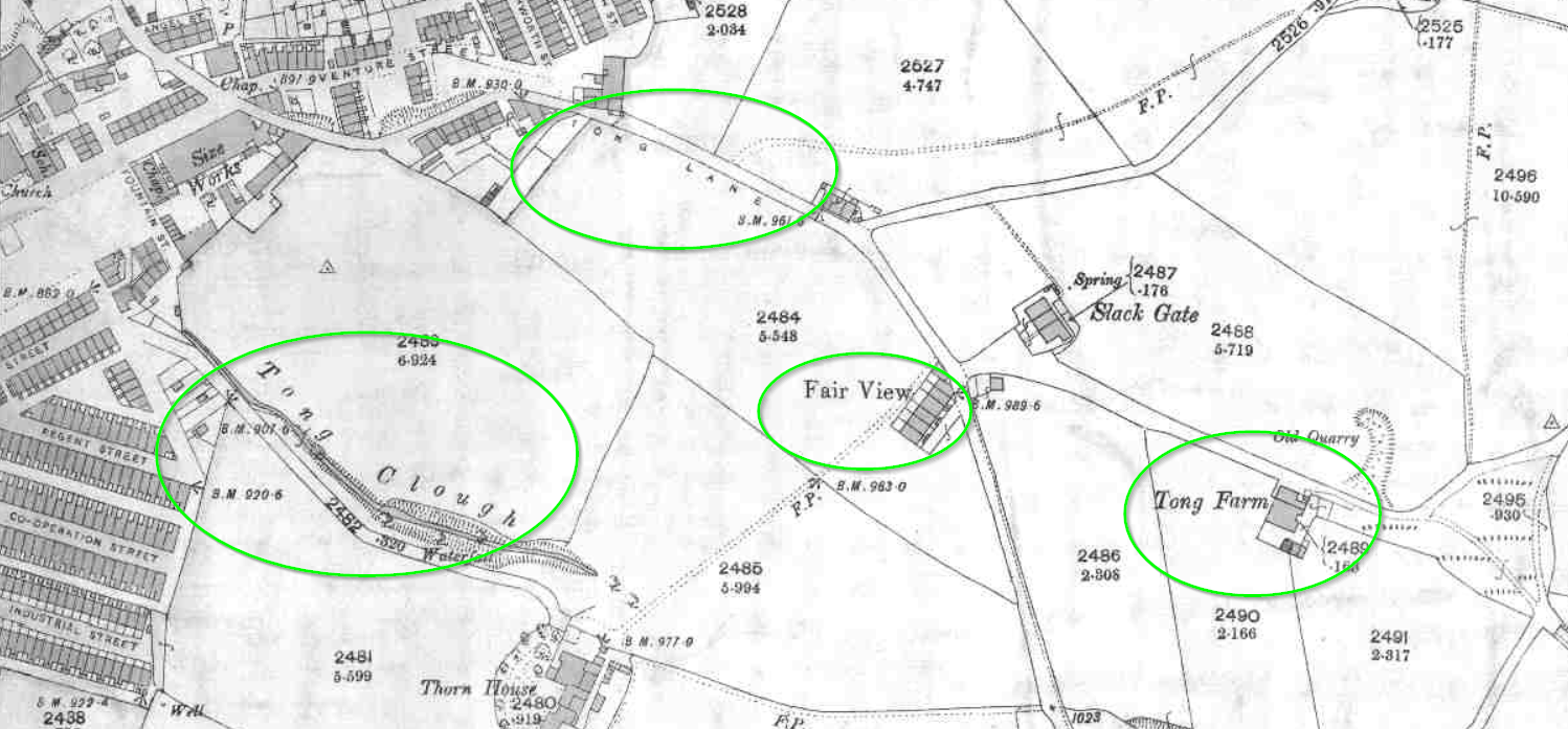The last two Howorth children were born in Tong and Higher Tong. Due to the proximity of the Tong Farm and Fair View, I am guessing that Fair View may be the same as Fair Way. That leaves us with Heyhead or Hey Head. Two Howorth children were born there in 1806 and 1809.