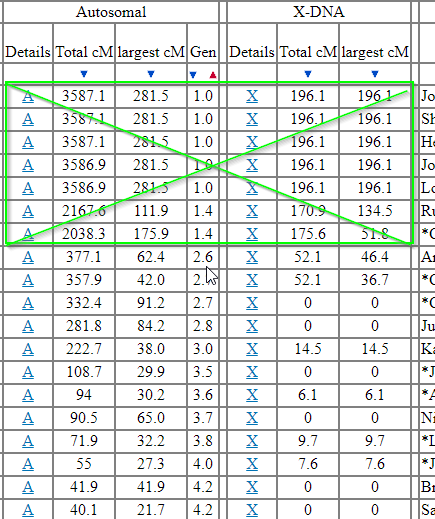 I believe that this went from 9% to 10% of my mom’s paternal side when I added the X Chromosome. I like looking at these orange numbers, to see how I am progressing.