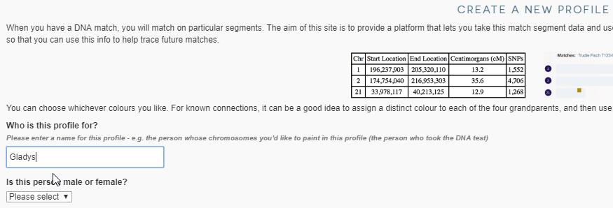 Next I switch the profile back to my mom and paint in the Radelle/Lentz/Eliza DNA: