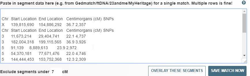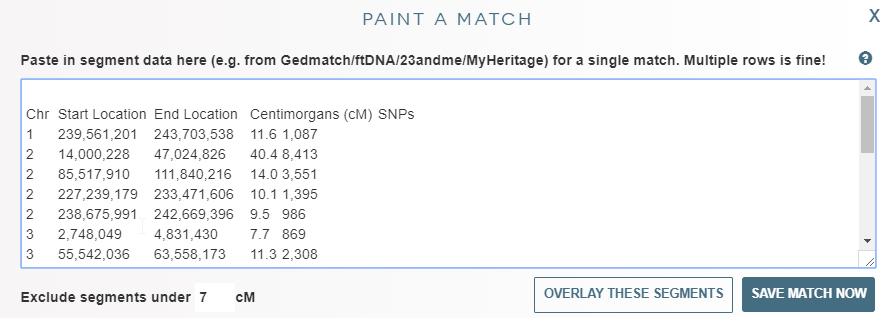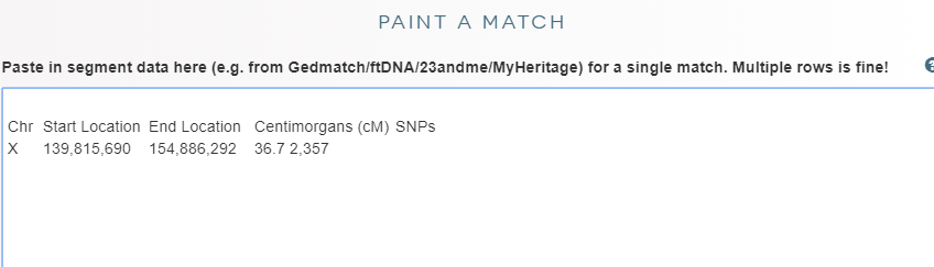 I’ll copy my mom’s match with Anita into the DNA Painter form: