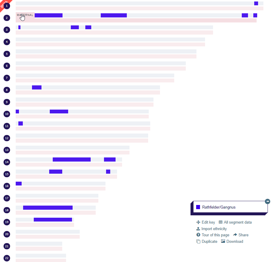 I hit the little refresh button to the right of the orange above and my mom was still at 5%. However, this is what it shows for the paternal side: