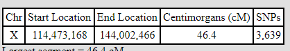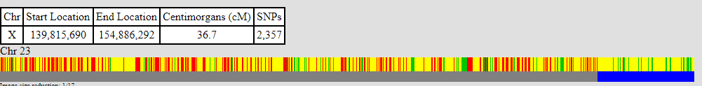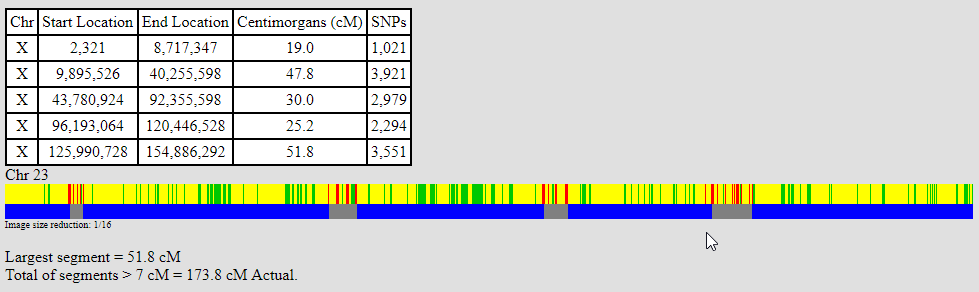 I was just mentioning the X Chromosome above. Here is how mom and Carolyn match on the X Chromosome: