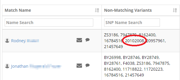 Here it seems we are dealing with a lot of double negatives. Jonathan’s results report Variant 11103209. As this is not on Jonathan’s list of Non-matching Variants, should I assume that Jonathan has this variant in common with Rodney and Paul? I’m confused.