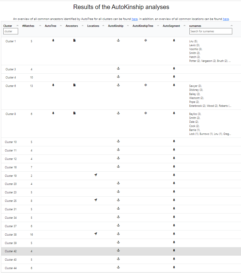 - Looking at the AutoClusters in terms of trees gives a fresh look at some old matches while also picking up some new matches that have been added to Gedmatch.