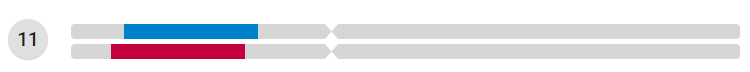 However, it appears that this tree only covers one side of Tracey’s ancestry. However, Tracey has a shared match at FTDNA with Amy. Amy also has Parr ancestry. Here is how Amy in blue and Tracey in red match me on Chromosome 11: