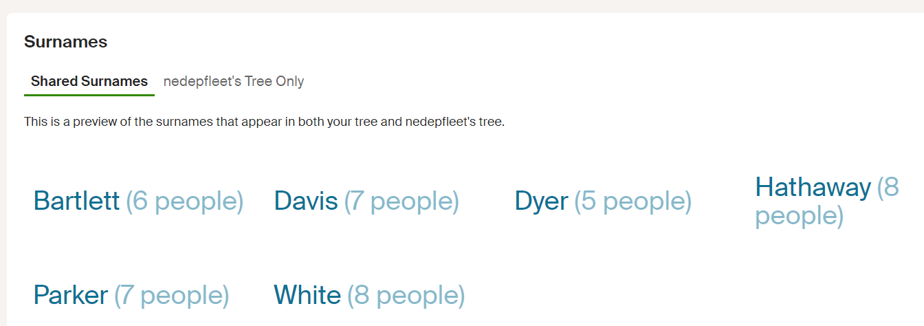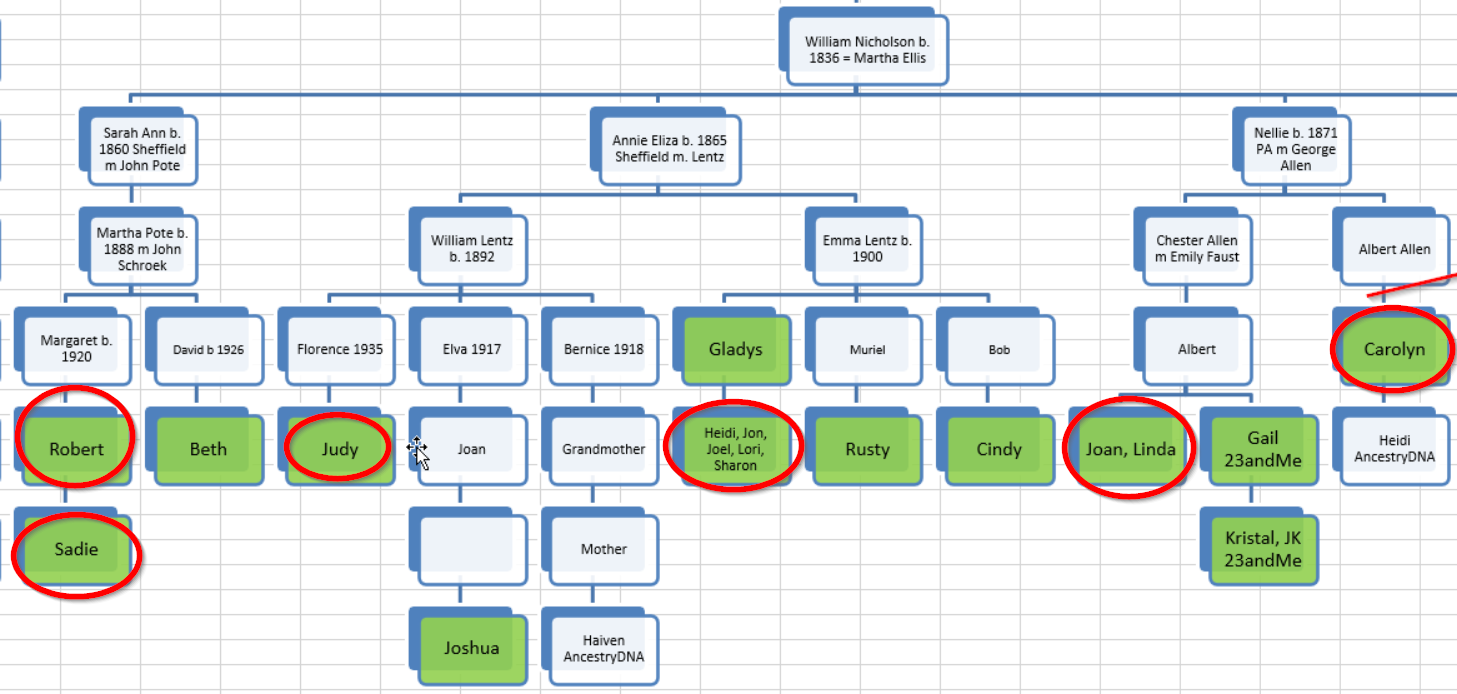 It helps showing these trees as it gives me hope that I may find a common ancestor or ancestors. Ned has a pretty good tree at Ancestry: