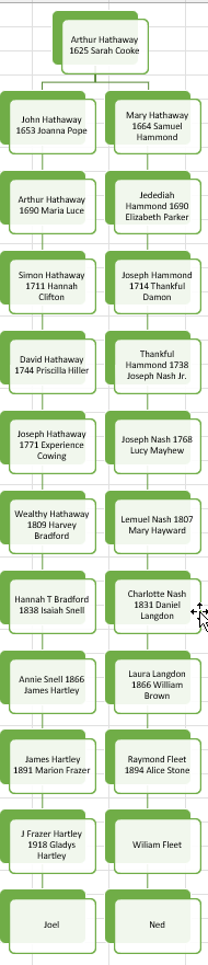 All I have to do is go up three generations to Arthur and Sarah Cooke and then down to Ned. Here is the connection by itself:
