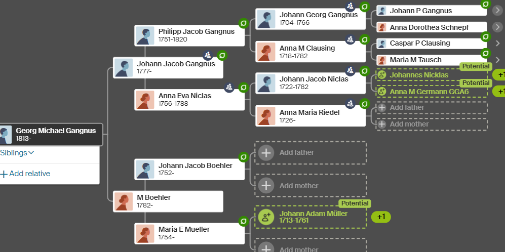 According to the 2003 book I have, Friedrich’s father was Georg Michael Gangnus. It turns out that he is already in my tree: