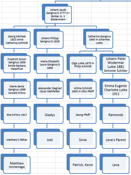- The book by Gustav Gangnus on the Gangnus family made it easy to connect my Gangnus family to Matthew’s