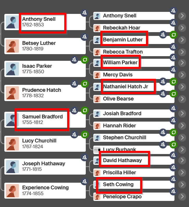 - There appears to be DNA connection to each of my four lines that served in the Revolutionary War. Those lines being Snell, Luther, Parker and Hatch.