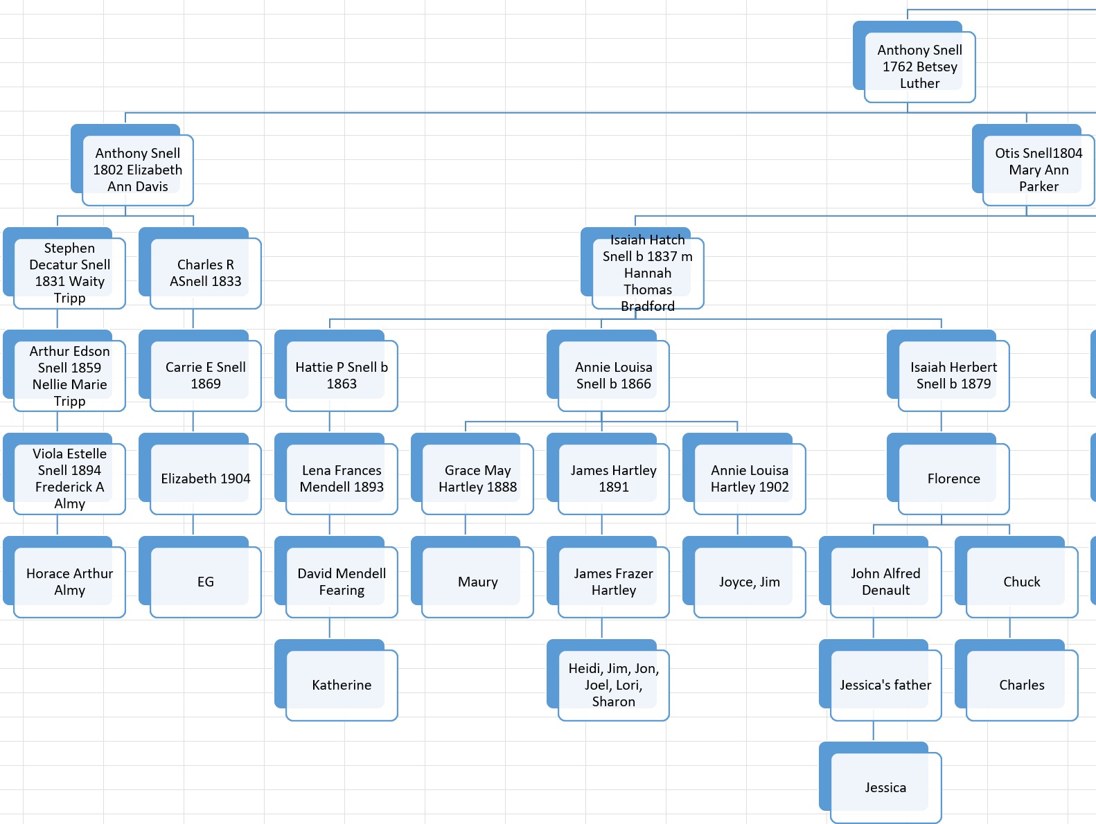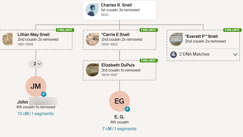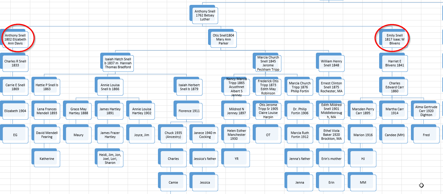 Let’s look at my Snell DNA/Genealogy tree to see how that compares: