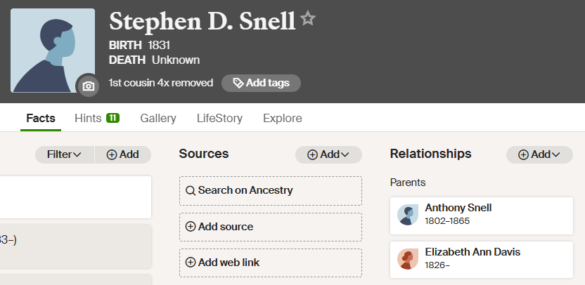 It looks like I already have Stephen Snell in my Ancestry tree: