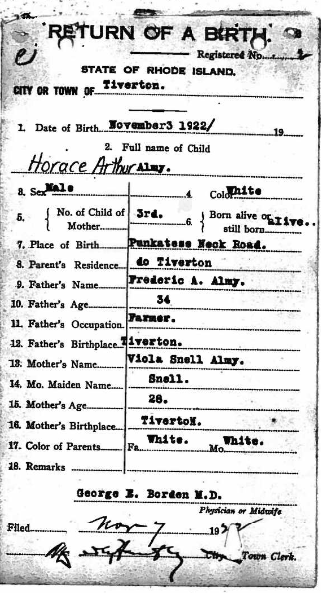 Here is Horace’s birth record: