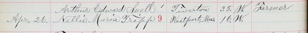 According to this, Arthur was quite a bit older than his wife Nellie. The couple married in 1894 in Tiverton: