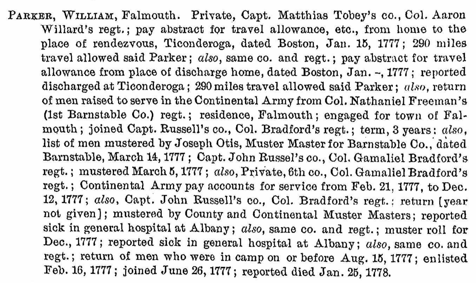 It looks like William was a Patriot and gave the last years of his life for his country – even when ill. I am curious as to how and where he died. This adds a lot of information as I knew very little about William Parker. I see that in 1772, his father Thomas left him one dollar in his will: