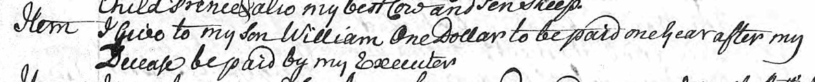 William’s father Thomas was quite wealthy. I wonder what a dollar would have meant at this time as the currency was in British Pounds. According to the internet: