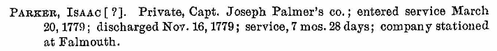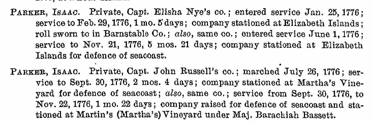 There are many other Isaac Parkers listed in the Revolutionary Soldier Book, but the above seem to be the most likely. It is possible that Isaac stayed behind while his father fought in the war.