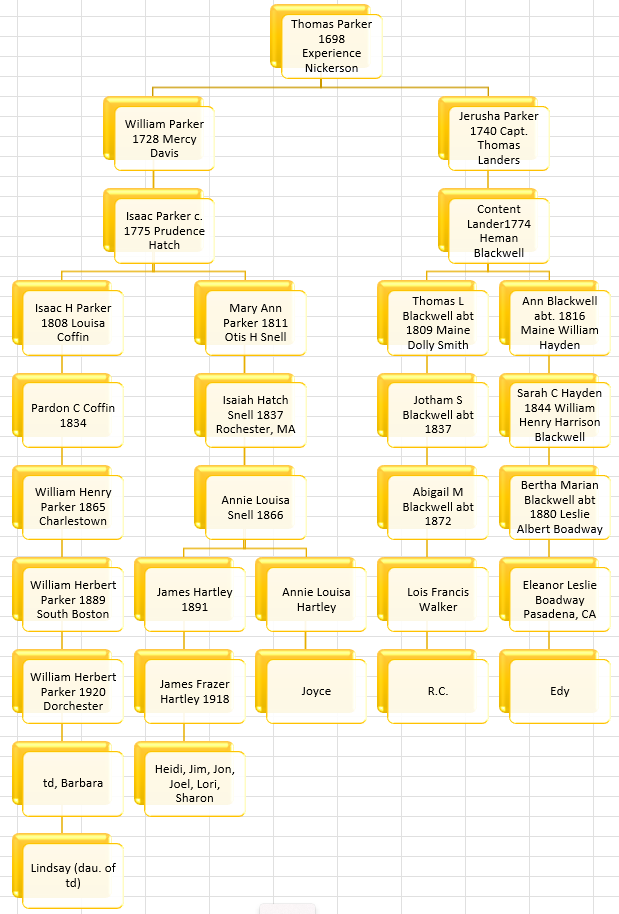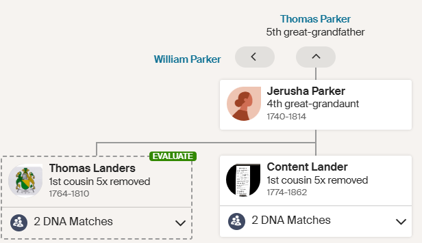 My father’s cousin Joyce has four matches with these likely descendants of Thomas Parker: