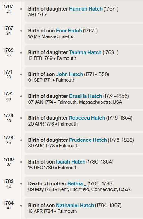 As Nathaniel was from Falmouth, this seems promising. I see that Nathaniel was busy having children during this time: