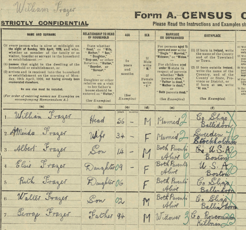 I will spend more time on the 1926 Census in a subsequent Blog.