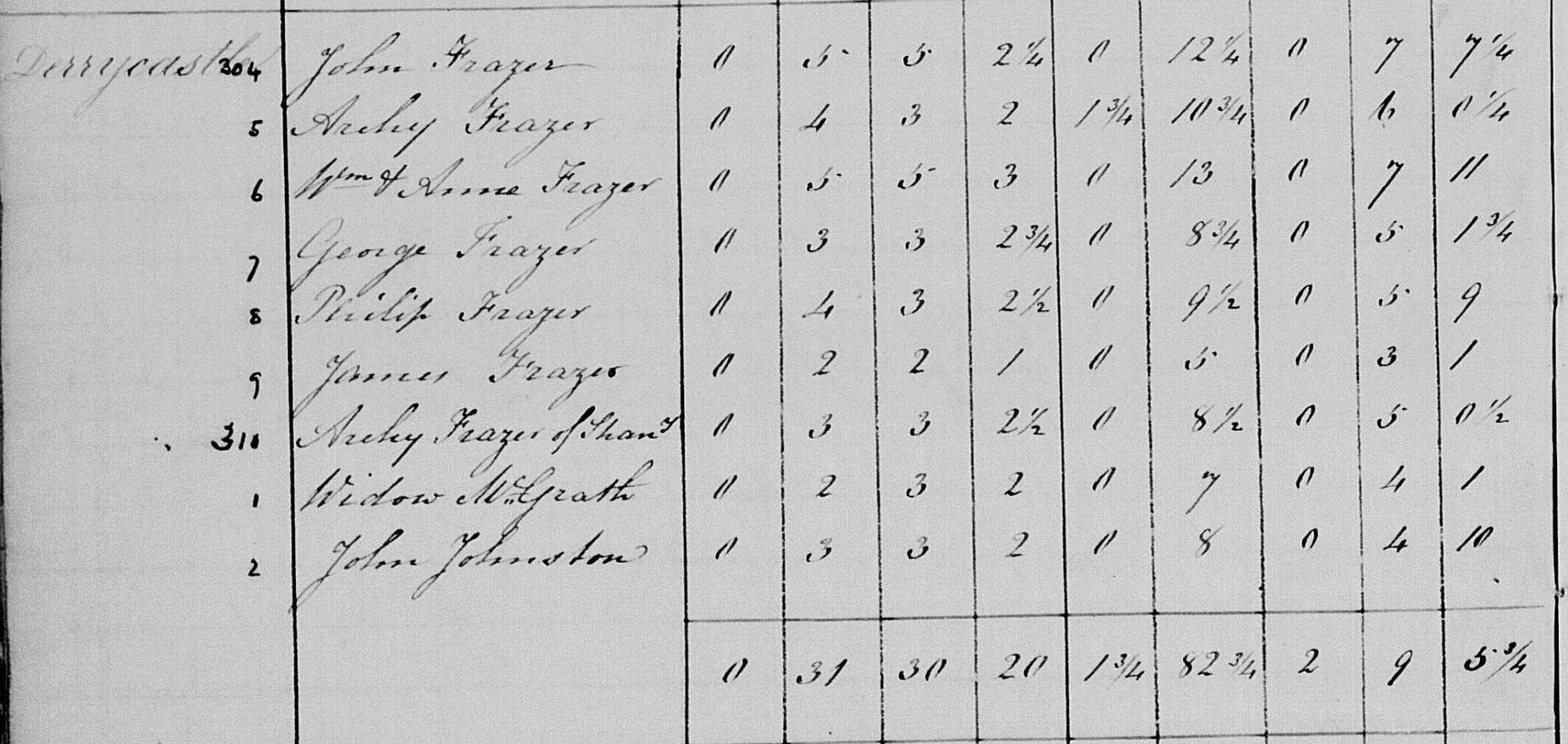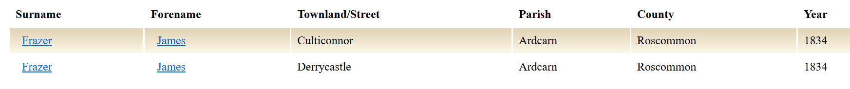 When I look at the Tithe Applotments, there are either two James Frazers or one who had land in two places: