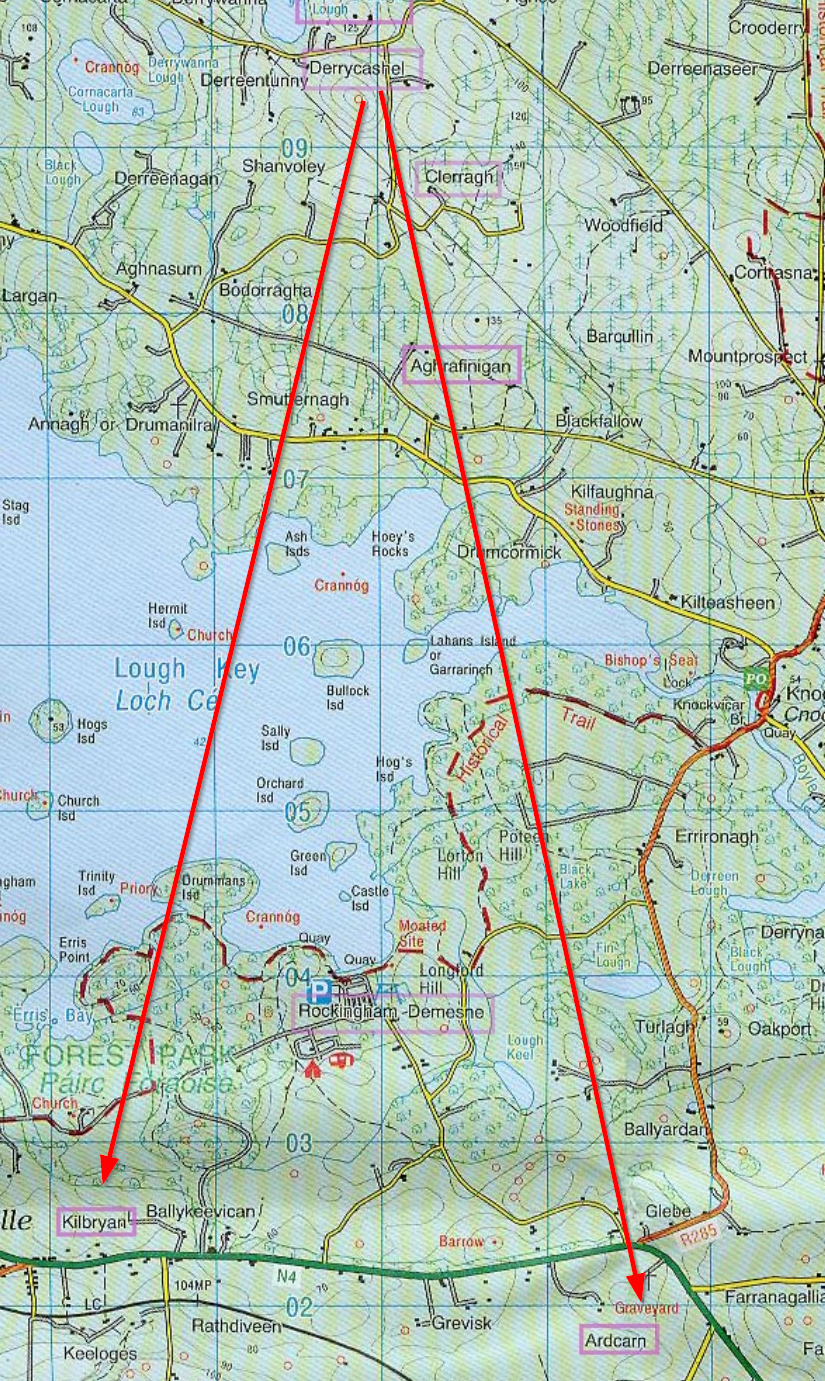 As for my theory that Kilbryan was closer than Ardcarn, that does not appear to be right: