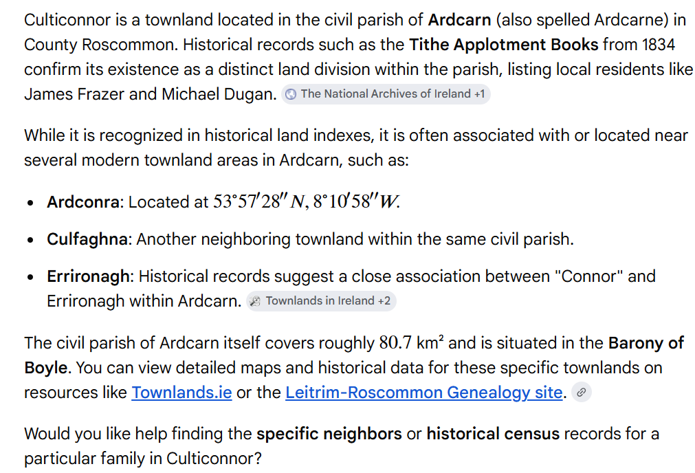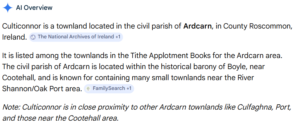 Unfortunately, I cannot find a place in Roscommon or Ardcarn called Culticonnor. But I did find some information when I searched for Culticonnor in association with Ardcarn Parish: