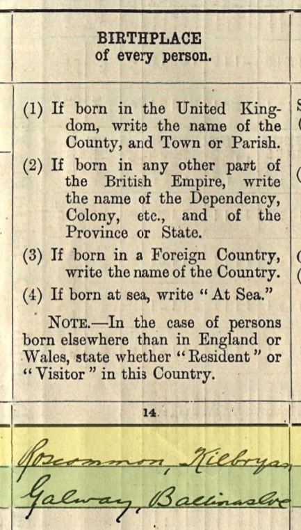 Sidney was living there as a widower with her stepson. Again, this could refer to the Parish of Kilbryan or they even may have been in the Parish of Ardcarn and mistakenly thought they were in Kilbryan?
