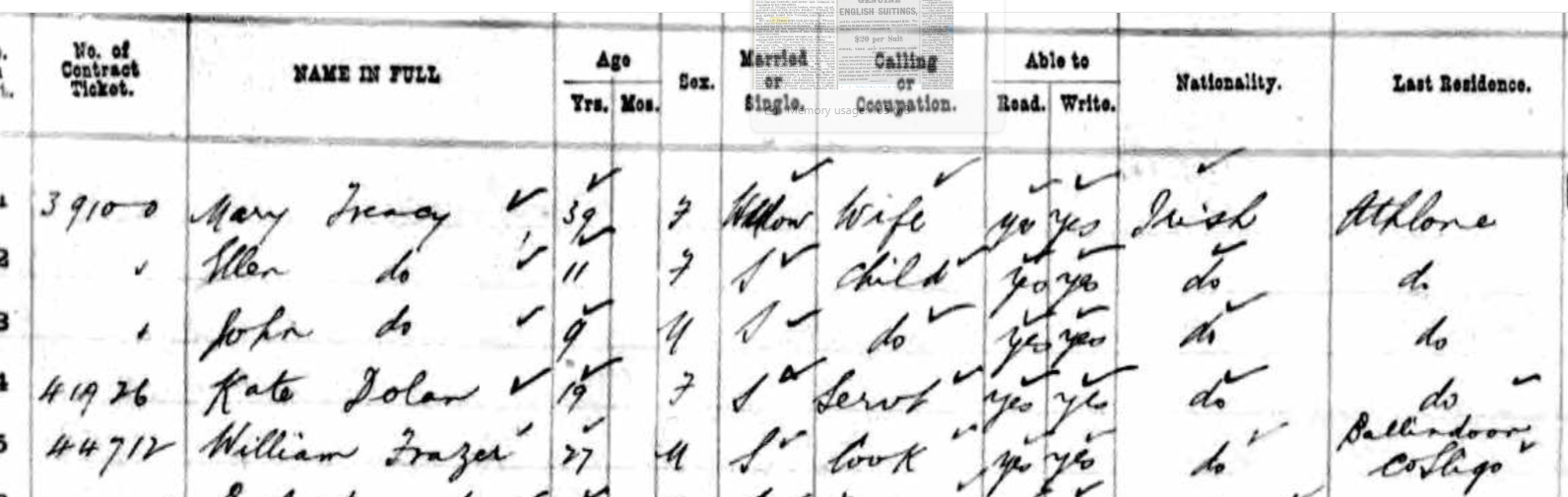 • The family had an additional child that I did not know about. I did not find that additional child yet, but perhaps the child was born in Ireland after the family moved there.
