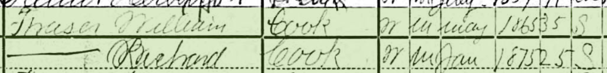 He was one of three cooks at a hotel. The third cook was Mary Feeney. This confirms my suspicion that William first came to Boston in 1890, so about three years after my great-grandfather came to Boston.