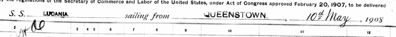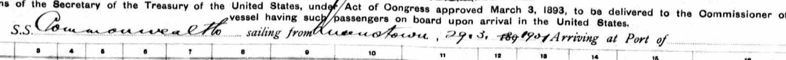 William was a cook in 1896 when he sailed from Queenstown to Boston. Queenstown was in County Cork.