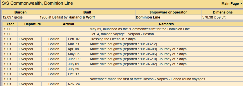 This ship would have been quite new at the time and took about 7 days to cross the Atlantic: