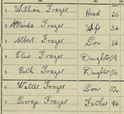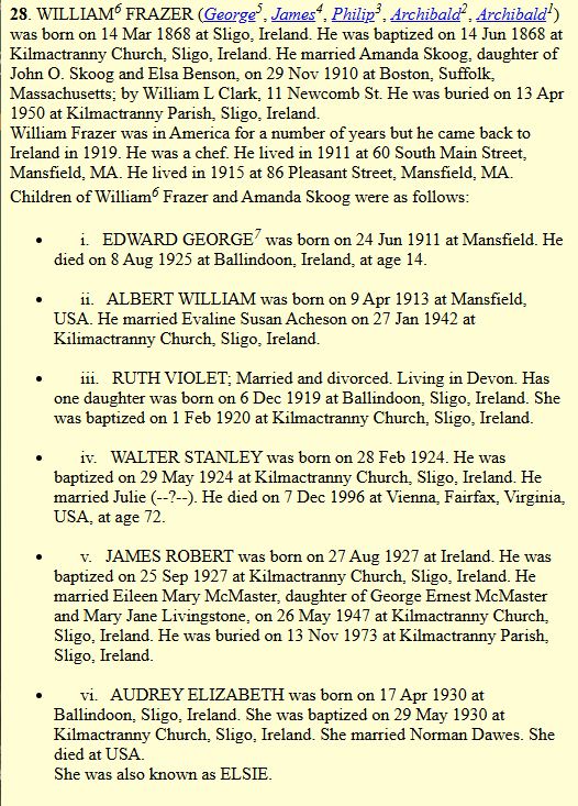 Amanda Frazer is listed as having had 6 children. William is listed as having 4 living children. That means that I must be missing two children who died young.