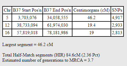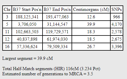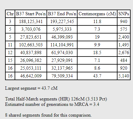 Lorraine has a match similar to Richard’s with Daniel, but slighter larger on Chromosome 14: