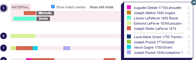 The area between Michelle and Germain would define a crossover. Michelle represents Richard’s Lefevre side and Germain (and the purple matches) represents Richard’s Pouliot side.