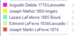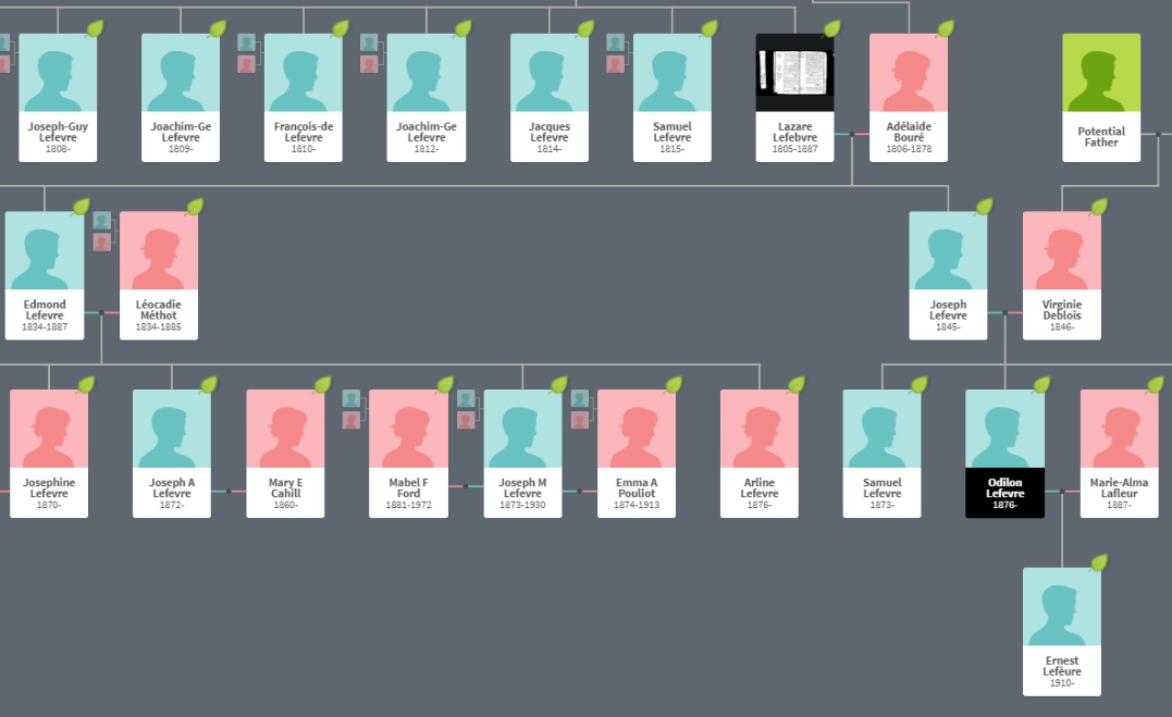 Where Marie would have gotten green Kerivan DNA from her father, it was replaced by Richard’s maternal side Pouliot and Lefevre DNA.