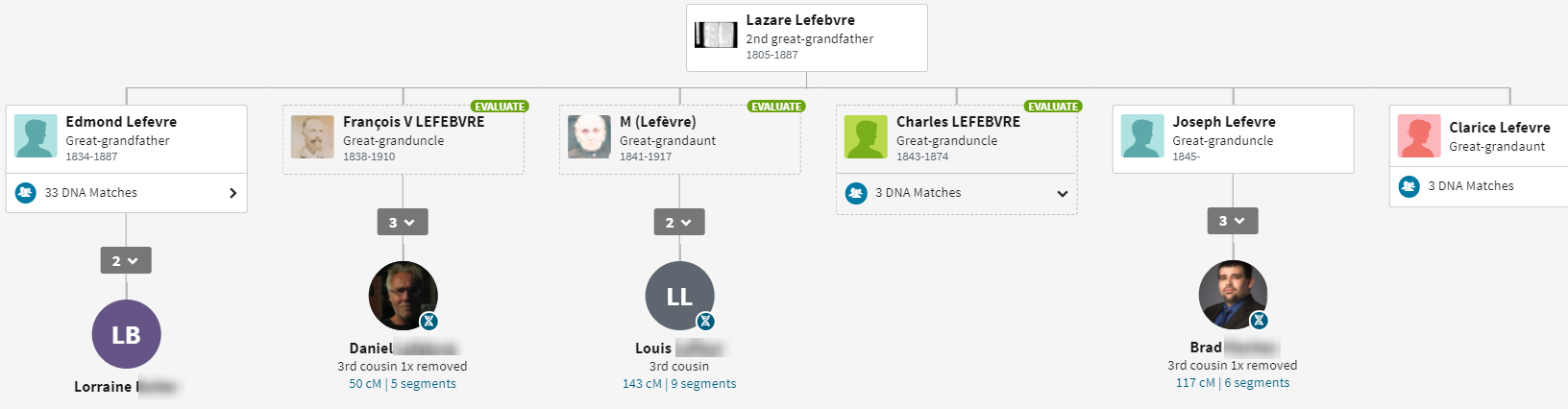 As Frances has a common DNA match with DH and Lorraine, the above connections are suggested.
