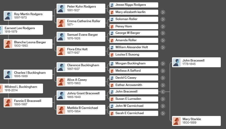 When I look at another of my father’s first cousins’ ThruLines, I see this:
