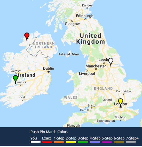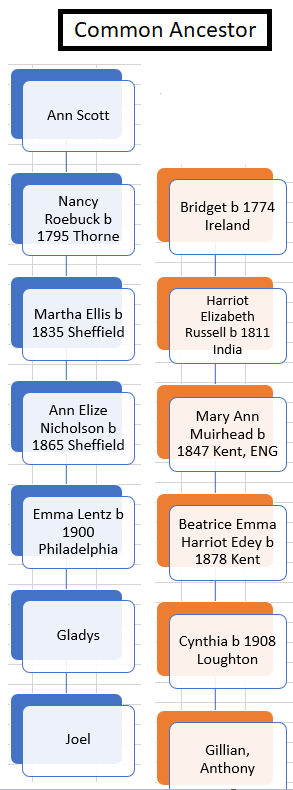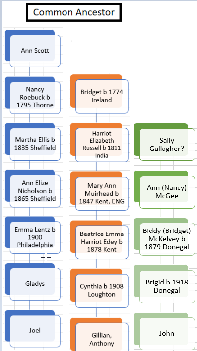 This is possible a female ancestor or certainly a relative of a female ancestor. A sample of one is difficult to make assumptions from, but my feeling prior to this blog was that my mother’s maternal ancestors came from Scotland and that descendant went to both England and Ireland. This sample of one would appear to support my previous assumption.