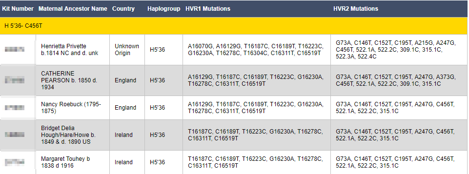 YFull appears to be ahead of FTDNA in creating a mitochondrial DNA Tree. Here is the H5’36 Tree: